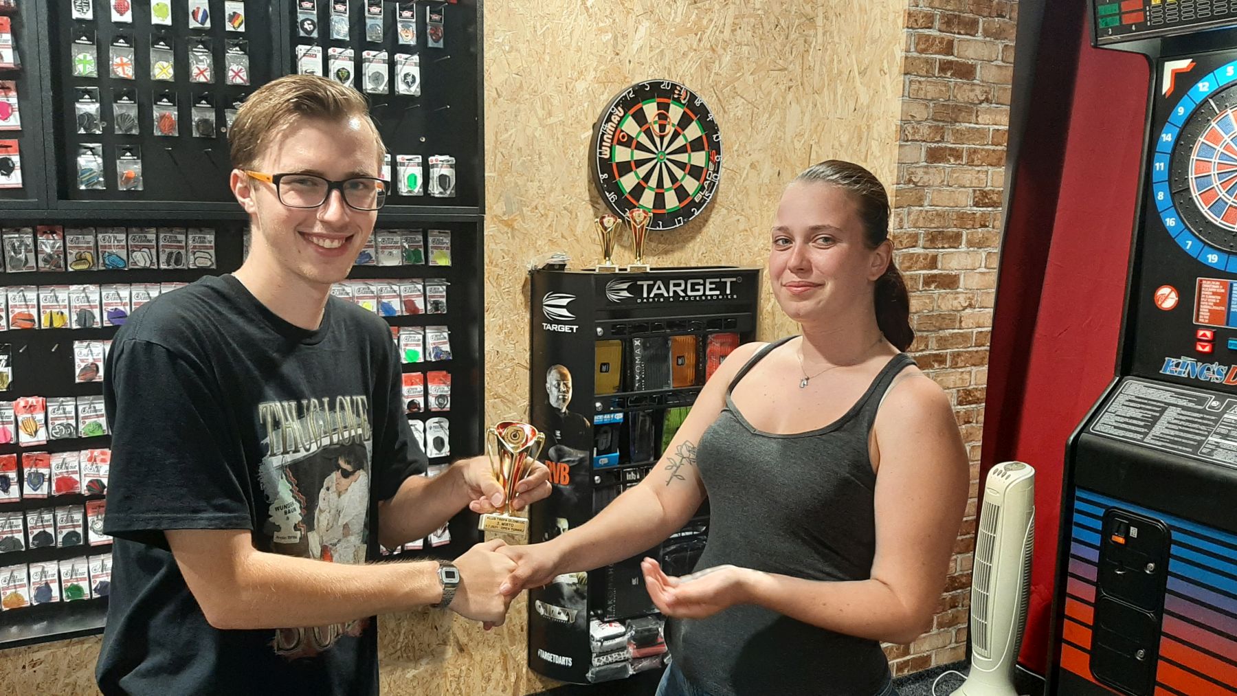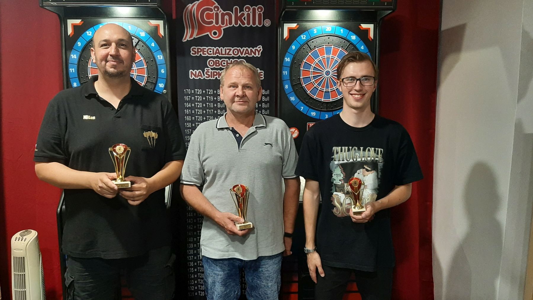 Ve čvrtek 1. 7. 2021 se v Klubu Trefa Olomouc uskutečnil Open turnaj ve hře 501 DO. Nejlépe se dařilo extraligovému hráči Jaromíru Dostálovi, který i v tomto roce bude oblékat dres týmu Kupec Tážaly. Druhé místo si vybojoval Michal Telíšek, který je nově členem týmu Rebel Olomouc. Třetí místo si do Bolelouce odváží Matěj Fiala, který je spoluhráčem našeho výše uvedeného vítěze a je nutné podotknout, že třetí místo mu patří jen díky vzájemnému zápasu s Michalem Telíškem, který skončil poměrem 2:1 v jeho neprospěch. Blahopřejem všem hráčům na pohárových příčkách a všem hráčům děkujeme za jejich účast a předvedenou hru.